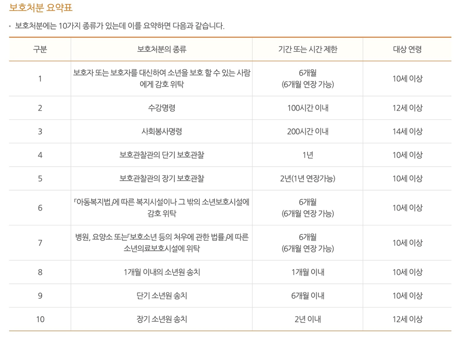 청소년 보호법의 본래 목적과는 반대로 청소년들이 미성년자인 걸 악용해 잔인한 범죄행위를 하는 청소년들이 매년 늘어나고 있다. 1985년 소년법이 처음 도입됐을 때의 취지는 반사회성이 있는 소년의 환경 조정과 품행 교정을 위한 보호처분 등의 필요한 조치를 하고, 형사처분에 관한 특별 조치를 함으로써 소년이 건전하게 성장하도록 돕는 것을 목적으로 하였다. 즉 소년법이란 반항하는 청소년을 위해 교화와 예방에 초점을 두고 소년법을 제정했음을 알 수 있다. 이 취지가 대부분 국민에 받아들여졌지만, 이제는 그와 반대의 여론이 늘어나고 있다. 보호법 아래 청소년들이 살인, 강도, 절도, 폭력의 4대 강력 범죄를 아무런 거리낌 없이 행하는 일이 증가하고 있다. 촉법소년 나이를 하향하고 보호처분만으로 교화나 예방이 어려운 촉법소년의 경우에는 예외적으로 형사처벌이 이루어질 수 있는 법안이 통과되어야 한다고 생각한다.