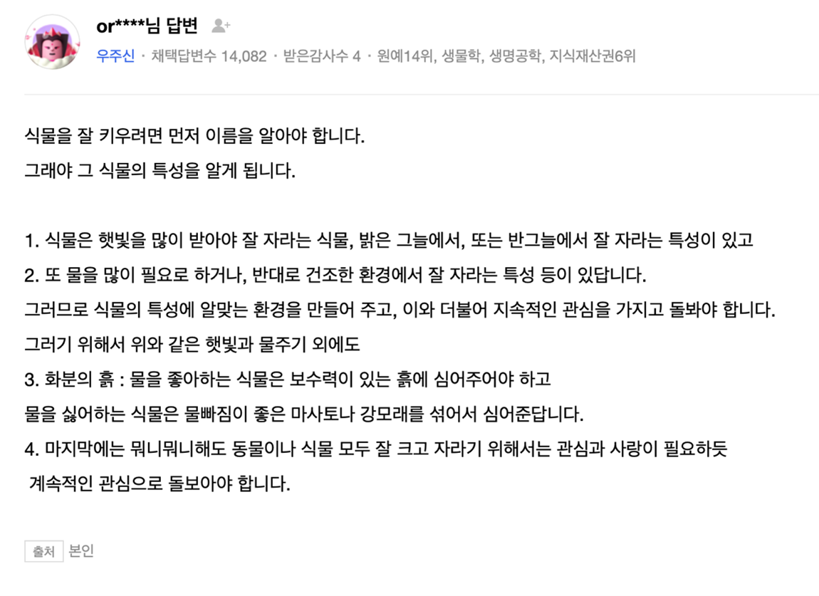 죽은 묘목도 살려내시는 할머니께 어떻게 그렇게 식물을 잘 키우시냐고 여쭈어보았었다.