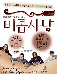 ABOUT/Notice11 Summer 2015 Berkopman 신/편입 환영회 버클리 대표 한인 언론미디어 동아리 Berkeley Opinion :: 버클리오피니언이 여러분을 Berkopman으로 초대합니다. 여러분 모두가 "엘리트 버클리 학생"으로 거듭날 수 있도록 “대학생활 꿀팁 팸플릿” & “엘리트 체크리스트” 증정하고 최고의 멘토링을 선사할 예정입니다. 궁금한 사항이 있으신 경우 24시간 풀 대기중인 버콥 카톡아이디 "버콥이" 및 페이스북 메세지로 연락주시면 감사하겠습니다. 버클리오피니언은 설레는 마음으로 열다섯 분의 버콥맨들을 기다리고 있겠습니다! ****선착순**** 15분만 신청을 받을 예정이오니 빠른 신청 부탁드립니다.일정 : 6월 27일(토) 07:00pm~장소 : 강남역 착한술집 참가비 : 2만원버클리 오피니언 사이트 : http://berkeleyopinion... 2015. 6. 14. BERKOP Fall 2014 신입 멤버 지원서 아래 파일을 다운받고 작성하여 9월 10일 정오까지 berkeleyopinion@gmail.com으로 보내주세요. 신청서 검토 후 9월 10, 11, 12일 중에 있을 인터뷰 일정을 보내 드립니다.중복 지원이 가능하니 지원하고 싶은 부서 질문에 전부 답변해주세요. 자세한 사항은 인터뷰 때 물어볼 예정이니 길이에 부담 갖지 말고 편하게 작성해 주시면 됩니다.*칼럼니스트 지원 시 첨부해야 하는 글은 예전에 작성한 글이어도 상관없습니다. *남자 DJ는 메인이 아닌 서브만 지원을 받고 있습니다. 포스터와는 다르게 남자분들도 DJ 지원이 가능하니 참고해주세요. 2014. 9. 6. BERKOP Fall 2014 OT/MT/Recruitment Info ****BERKOP Fall OT & MT**** ★OT (https://www.facebook.com/events/696925330385494/) 가을학기를 맞아 버콥에서 새 가족을 찾고 있습니다. 버콥에 대한 자세한 소개와 지원 과정 등 세부 사항은 9월 5일 금요일 8시, 56 Barrows에서 열리는 오리엔테이션에 오셔서 알아가세요! OT가 끝난 후 버콥 스태프들과 친해질 수 있는 소규모 뒷풀이가 있을 예정입니다. 뒷풀이는 장소가 크지 않은 관계로 신/편입생 우대 선착순 12명만 받고 있습니다.https://docs.google.com/forms/d/1O9G-8wqBu3GDYvhniYAyGGyTWmVyPxa5e0C7R1784ig/viewform?usp=send_form 에서 미리 RSVP해주세요!.. 2014. 9. 6. BERKOP MEMBERSHIP RECRUITING :: Spring 2014 갑오년 새해를 맞이하여 저희 Berkeley Opinion에서 새로운 멤버를 모집합니다. 2014년 봄학기를 더 따뜻하고 알차게 보내고 싶으신 분들은 필독하세요!! 저희 버클리 오피니언은 현재 중앙일보 인사부에서도 문의가 올만큼 수준 높은 글을 꾸준히 올리고 있으며 유명 포털 Best View에만 10번 이상 등극한 이력을 비롯, 민주평통 주최 UCC 대회에서 금상을 수상하여 2000불의 상금을 거머쥔 영향력있는 동아리입니다. 이러한 놀라운 성장을 바탕으로 저희 버콥은 버클리뿐만 아니라 더 나아가 세계의 모든 독자들과 양질의 커뮤니케이션을 통해 버클리의 위상을 알리는 것을 궁극적인 목표로 하고있습니다. ★ 컬럼부문 모집요강 버클리 오피니언의 핵심이자 버콥의 시초인 "글"을 쓰는 그룹입니다. 글재주가 뛰어.. 2014. 1. 28. ::: BERKELEY OPINION ::: FALL 2013 Membership Training!! 나 지금 멘트 날리는 거 아냐 내뱉는 달콤한 말에~ 못 이겨 받아 달라는 거 아냐 편하게 생각해~ 너랑 천천히 가고 싶어 너를 천천히 알고 싶어~ oh~oh~ye~이번만큼 take it slow~ 버클리에 새로 오신 여러분 환영합니다! 앞으로 다가올 대학 생활의 청사진이 조금씩은 눈앞에 그려지시나요? 그렇다면 바로 지금, 여러분의 도면을 조금 더 뚜렷하게 그려줄 버클리 오피니언 MT에 참가하세요! 술마시고 골로 가지 않는 엠티, 서프라이즈가 끊이지 않는 엠티, 4년간 같이 먹고 잘 친구들을 만나는 엠티, 그리고... 버클리 걸스데이들과 함께 하는 엠티! ^______^ ♥ When? 9/13 금~ 9/15 일 금요일 오후에 출발! 일요일 오후에 버클리 도착! ♥ Where? 매우 고립된 산장 ♥ $$$?.. 2013. 9. 9. BERKOP MEMBERSHIP RECRUITING 버콥 멤버 모집요강 :: Fall 2013 BERKOP MEMBERSHIP RECRUITING :: Fall 2013 저희 버클리 오피니언 OT에 참석해 주셨던 여러분들 정말 감사드립니다. 덕분에 성공적인 첫걸음을 내딛을 수 있게 된 것 같습니다. 본 공지는 BERKOP 새로운 멤버 모집에 관심을 가지고 기다려 주신 분들을 위한 공지입니다. 글을 쓰는 Core Staff 및 필진 모집 요강을 필두로 라디오, 미디어 Staff의 모집 요강을 안내해 드릴테니 정독 후 주저마시고 berkeleyopinion@gmail.com으로 이메일 주시길 바랍니다. ★BERKOP :: Core Staff 한글 컬럼니스트 인터뷰 시에는 원하시는 글의 방향, 가장 strong 하다고 생각되는 토픽, 그리고 글 발행 경험 위주로 여쭤볼거구요, 샘플 writing을 미리.. 2013. 9. 6. 이전 1 2 다음
