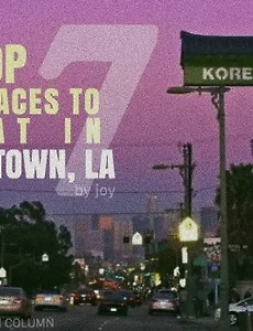 top 7 places to eat inKOREATOWN, LOS ANGELES Though I’m not directly from Los Angeles, I’ve been to Koreatown my entire life, normally on the weekends. Whether it was to watch a movie, go eat Korean food, or stop by the supermarket, I’d say I know some of the best places to eat when you’re in K-Town. This list only includes restaurants in K-Town, not chains (Myeongrang, Yupdduk, Sul & Beans). I’..